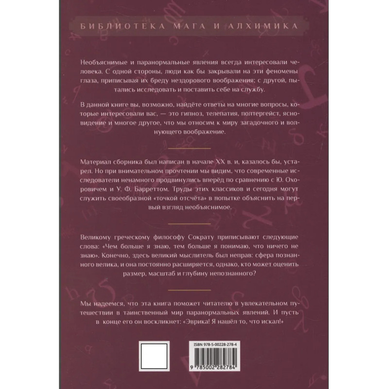Данное издание представляет собой совместную работу французского психолога Альфреда Бине (1857-1911) и врача Шарля Самсона Фере (1852-1907), посвящённую .магнетизму и гипнозу, вышедшую в 1887 году под названием "Le Magnetisme animal" ("Животный магнетизм").Эта книга была чрезвычайно популярна на рубеже XIX -XX веков, но и сегодня не утратила своей значимости. Она может рассматриваться как своеобразная энциклопедия таинственных феноменов нашей психики. В ней рассматриваются такие темы, как магнетизм, гипнотизм, способы гипнотизирования, галлюцинации, параличи, техника безопасности при гипнозе и многие другие.Издание предназначено для всех, интересующихся магнетизмом, гипнозом, внушением и иными загадочными феноменами человеческого сознания.