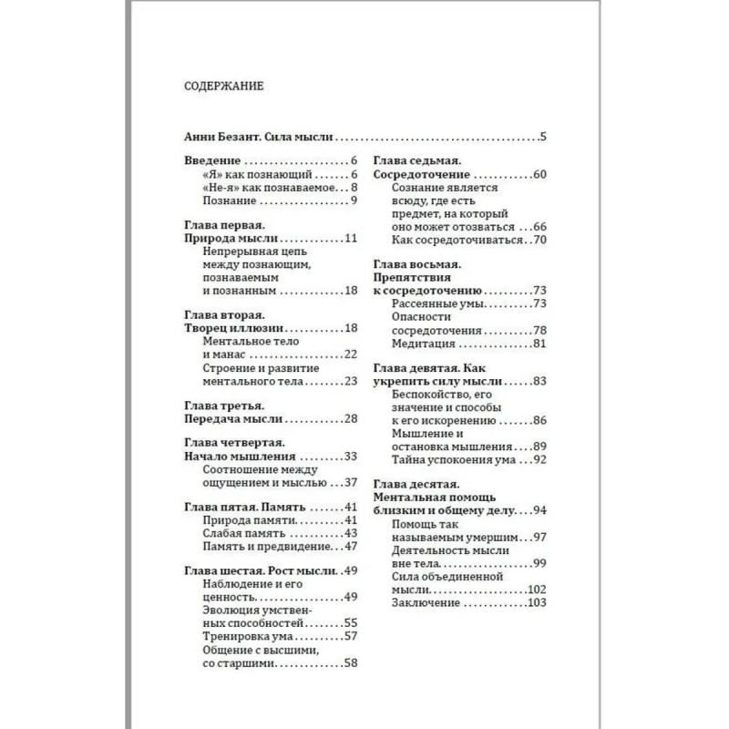 Природа человеческого знания и механизмы познания, развитие памяти и воспитание ума, сосредоточение и созерцание, беспокойство и успокоение, умение общаться с людьми и Богом - об этом "Сила мысли" известного теософа, преемницы Е.П. Блаватской