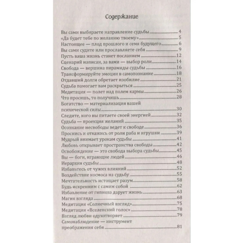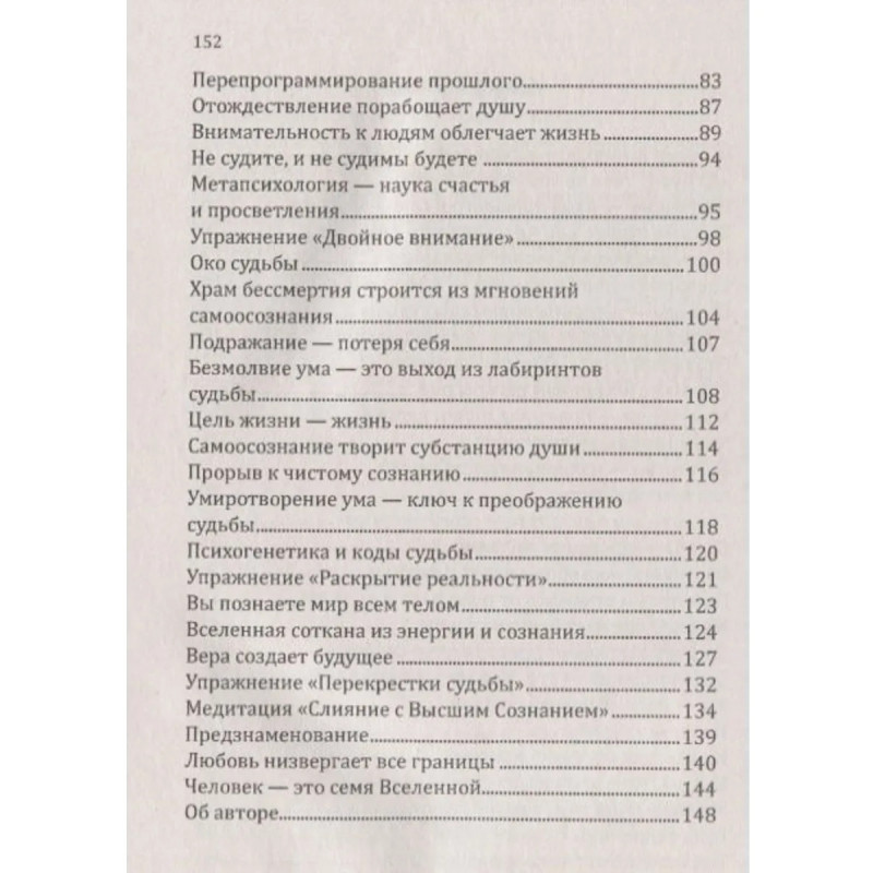 Человек - сам строитель своей судьбы, высокого или низкого положения в обществе, роскоши или бедности, свободы или рабства. Но если человек не желает сам строить свою судьбу, за него это делают другие. Пространство судьбы многомерно, многослойно. Вы можете сознательно перейти на другой уровень судьбы и полностью изменить свою жизнь, условия своего существования, мотивы и программы поведения. Перед вами откроются новые перспективы развития, новые возможности. Научившись странствовать по сторонам судьбы, вы станете настоящим мастером жизни. Однако переход из одного пространства судьбы в другое требует огромной энергии. Поэтому необходимы практики сохранения энергии и подключения к источникам силы. В этой книге даются основополагающие принципы искусства жизни и эффективные методы преображения сознания, развития творческой силы и достижения свободы.