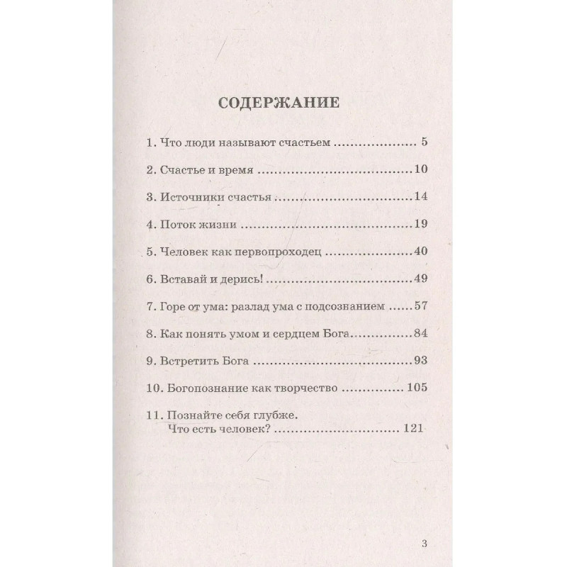Как найти счастье, где его источник? Источник счастья может быть найден каждым, это даст ему основу полноценной и радостной жизни. Это — не внешние блага, не удовольствия, не блаженный покой. Это — новое понимание сущности человека, божественной искры в каждом, осознание Потока жизни вокруг нас, зримого, осязаемого, частицей которого каждый является. Чувство вовлеченности в этот Поток, понимание его сути — единственная основа для удовлетворения жизнью и счастья. Читателю помогут практические советы по выходу из психологических тупиков, избавлению от ложных и вредных убеждений, отравляющих жизнь. В книге изложены также мнения великих мыслителей о «доброй» и «злой» стороне человека, о путях достижения счастья, а также их сомнения в том, что счастье может быть найдено.