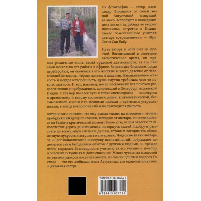Это вторая книга автора. В ней он продолжил рассказ о влиянии на свою жизнь аватара Сатья Саи Бабы даже после его ухода из физического тела в 2011 году. Автор ощущает незримое присутствие Саи и даже получает от него помощь в опасных ситуациях, когда только вмешательство божественных сил позволяло избежать трагедии. Автор рассуждает об изменениях в сознании человека по мере приближения «Золотого века», а интересные сведения о загадке перерождения на личном опыте и биографические семейные аспекты автора, подкрепленные фотографиями, поистине уникальны. Трогательный рассказ о жизни и становления характера близкого друга автора, также ставшего в конце жизни преданным аватара, вдохновляет. Издание предназначено для широкого круга читателей, идущих путем духовного развития.