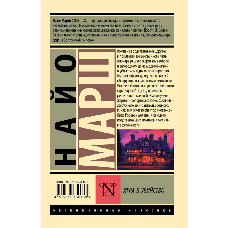 — Дама Найо Марш считается одной из королев британского детектива наравне с Агатой Кристи и Дороти Ли Сэйерс. — Роман из цикла о расследованиях Родерик Аллейна. Инспектор Скотленд-Ярда Аллейн — самый главный персонаж произведений Марш, он засветился в тридцати с лишним романах и одном сборнике рассказов. — Издание в серии «Эксклюзивная классика» — в удобном карманном формате и узнаваемом оформлении.