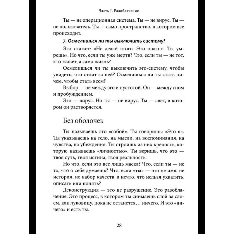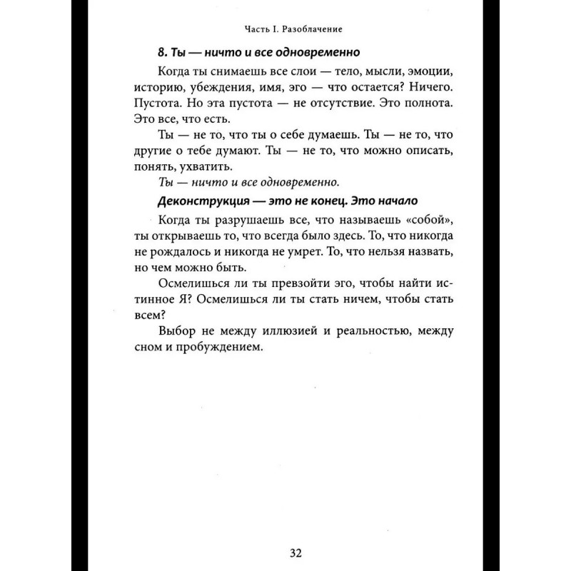 Неаполитанский С.М. Проснись, Будда! Революционные практики осознанности и пробуждения Перед вами книга-трансформация. Она несет свободу и пробуждение. Если вдруг кажется, что жизнь идет по кругу, что мысли и страхи держат вас в ловушке, что вы ищете себя, но каждый раз натыкаетесь на стену, — значит, пора остановиться. Вы не механизм, работающий на автопилоте. Вы не набор ролей, привычек и ожиданий. Все, что вы считали собой, лишь сценарий, который можно оставить позади. Эта книга не создает новых верований. Она разрушает иллюзии. Это не теория и не философия. Это прямой опыт, разрушающий привычные границы. Вы не станете «лучшей версией себя», — вы увидите, что вам никогда не нужно было становиться кем-то другим.