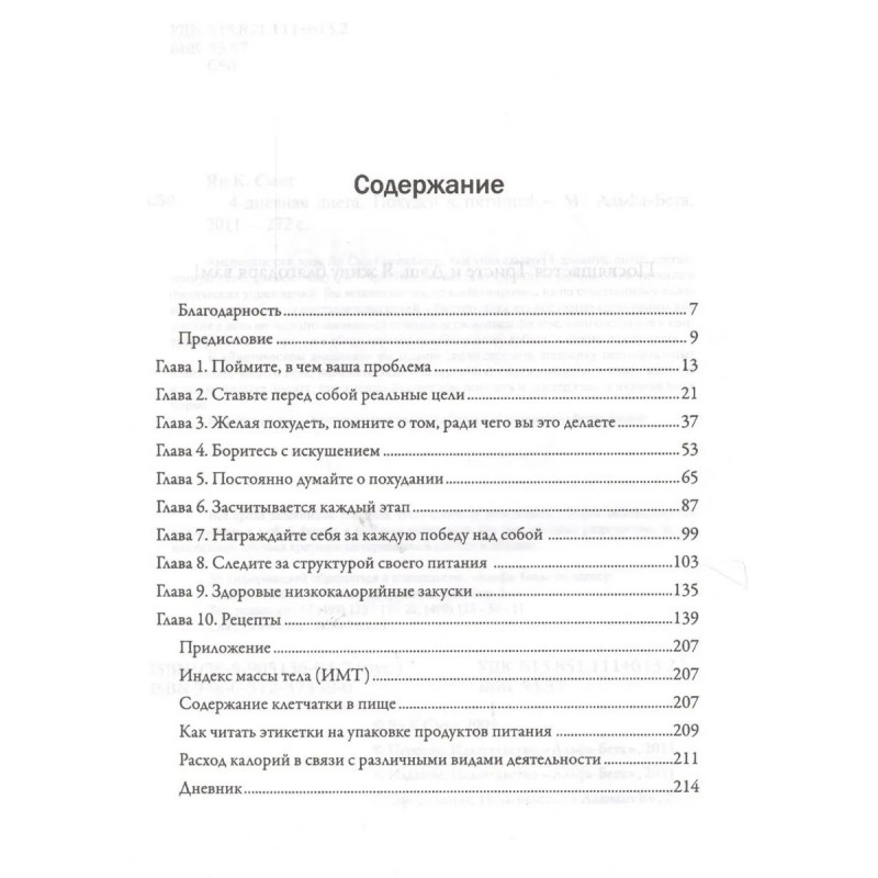 Американский врач Ян Смит предлагает вам уникальную 4-дневную диету, составленную из нескольких модулей - простых, как детские кубики, и удобных схем питания и физических упражнений. Вы можете свободно комбинировать их по собственному желанию в зависимости от поставленных целей - быстро сбросить ненужные килограммы или изо дня в день методично заниматься совершенствованием физического состояния и контролировать свой вес - и в обоих случаях вам будет легко добиться нужного результата. .В "Диетическом дневнике" вы можете зафиксировать динамику положительных изменений вашего веса, внешнего вида и настроения, а предложенные в книге вопросы и тесты помогут понять, что именно мешает вам похудеть и поддерживать нужный вес в норме. .И, конечно же, - потрясающие рецепты блюд для здорового образа жизни! .