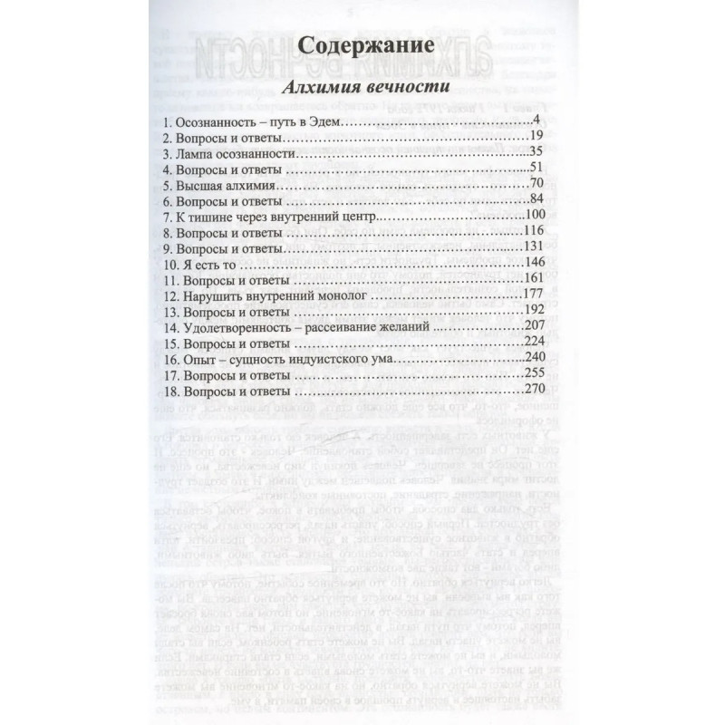 Ошо, известный также как Багван Шри Раджниш - просветленный мастер нашего времени. Слово «Ошо» можно перевести как «подобный океану», «благословенный». В книге «Алхимия вечности» Багван Шри Раджниш комментирует Атма Пуджа Упанишаду. Лекции прочитаны в 1972 году в Индии. .Все материалы книги опубликованы при жизни и под руководством Ошо. Перевод не содержит никаких вставок и сокращений и полностью соответствует оригиналу. . .Все права на русский перевод этой книги защищены в соответствии с законом России об авторских правах. . .