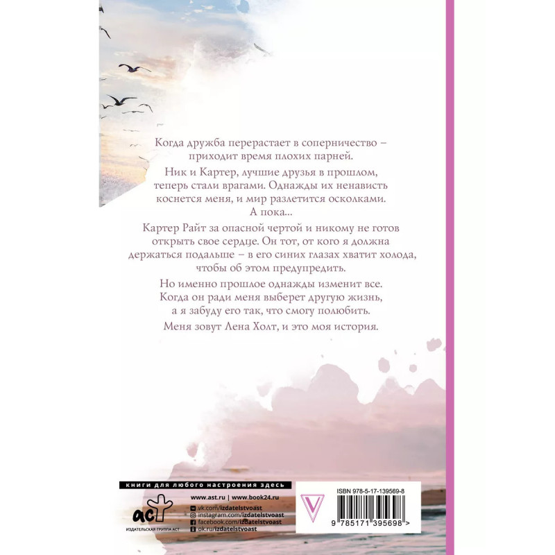 Осколки тебя. Когда дружба перерастает в соперничество - приходит время пл.оxих парней. Ник и Картер, лучшие друзья в прошлом, теперь стали врагами. Однажды их ненависть коснется меня, и мир разлетится осколками. А пока Картер Райт за опасной чертой и никому не готов открыть свое сердце. Он тот, от кого я должна держаться подальше - в его синих глазах хватит холода, чтобы об этом предупредить. Но именно прошлое однажды изменит все. Когда он ради меня выберет другую жизнь, а я забуду его так, что смогу полюбить. Меня зовут Лена Холт, и это моя история.
