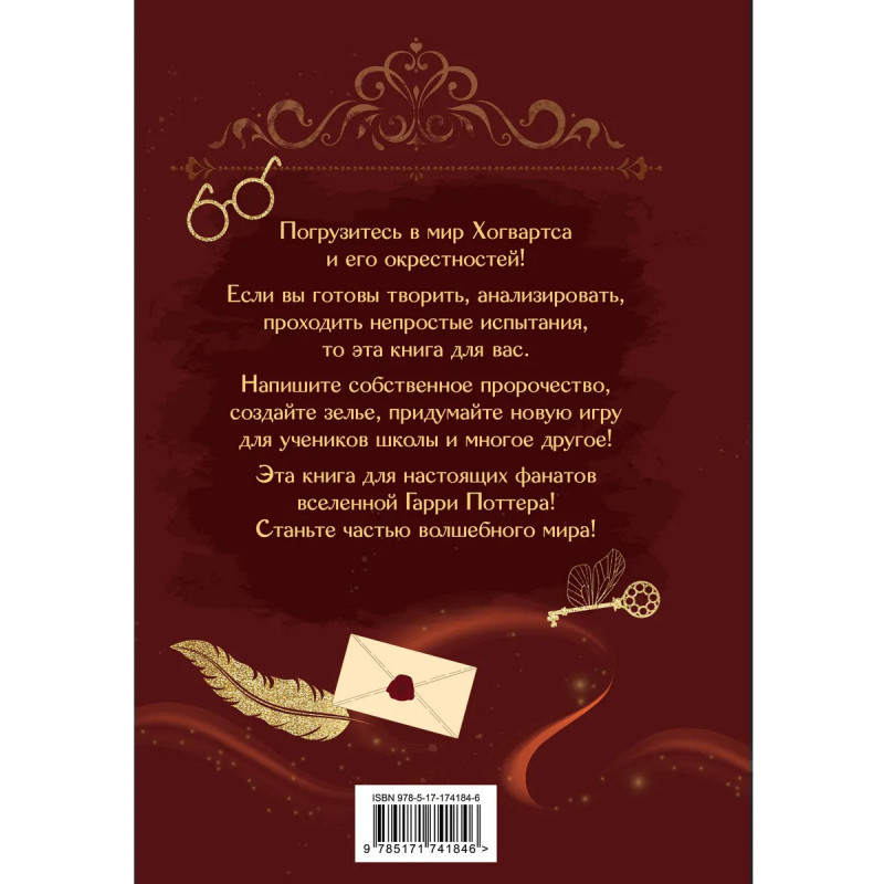 Погрузитесь в мир Хогвартса и его окрестностей! Если вы готовы творить, анализировать, проходить непростые испытания, то эта книга для вас. Напишите собственное пророчество, создайте зелье, придумайте новую игру для учеников школы и многое другое! Эта книга для настоящих фанатов вселенной Гарри Поттера! Станьте частью волшебного мира!