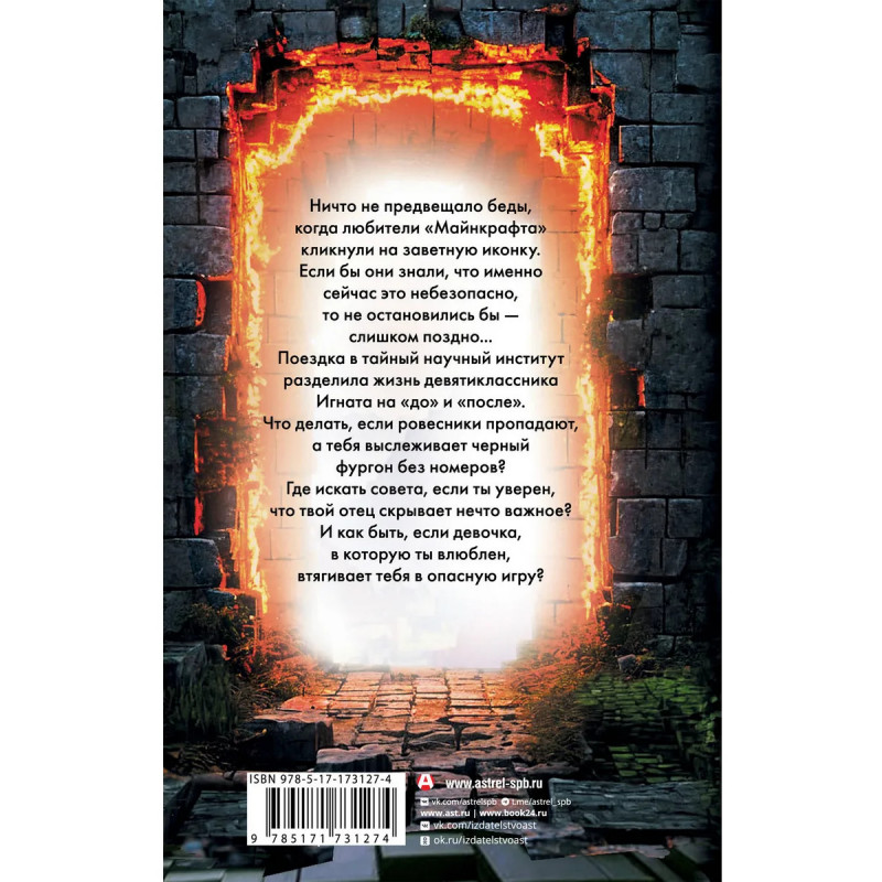 Ничто не предвещало беды, когда любители "Майнкрафта" кликнули на заветную иконку. Если бы они знали, что именно сейчас это небезопасно, то не остановились бы — слишком поздно... Поездка в тайный научный институт разделила жизнь девятиклассника Игната на "до" и "после". Что делать, если ровесники пропадают, а тебя выслеживает черный фургон без номеров? Где искать совета, если ты уверен, что твой отец скрывает нечто важное? И как быть, если девочка, в которую ты влюблен, втягивает тебя в опасную игру?