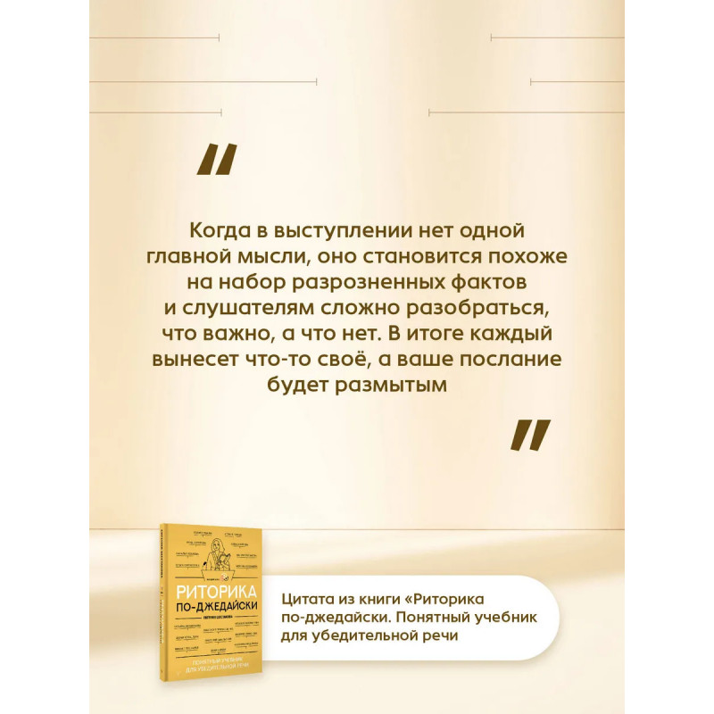 Это не те дроиды, которых вы ищете: просто написать речь и прочитать, говорить тихо, чтобы не отвлекались и слушали, смотреть не на аудиторию, а в стену, чтобы не волноваться. Забудьте эти мифы! Овладеть риторикой время пришло: научишься разить словом как световым мечом. С этой книгой-мастером ты поймешь: • как говорить уверенно и перестать бояться выступлений, камеры и микрофона; • как структурировать свою речь и сделать ее живой и интересной; • как постоянно удерживать внимание аудитории; • как подобрать образ к выступлению и почему он тоже важен; • как подготовить презентацию. Авторы-джедаи собрали последние научные знания и практики, освоив которые, ты овладеешь магией убеждения. Открой свою искру, создай резонирующее послание и веди других на светлую сторону коммуникации! Да будет твое слово сильным, как самый мощный световой меч!