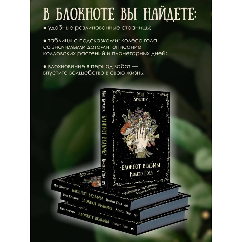Магический блокнот для всех, кто увлекается магией! Добавит в вашу жизнь частичку волшебства, ведь даже самые простые вещи, записанные в этот блокнот, станут особенными. Запишите сюда рецепт домашнего пирога, яркий сон, который хочется запомнить, описание понравившейся книги или расклад Таро. Внутри вы найдете красиво оформленные, удобные для записи разлинованные страницы, а также несколько таблиц с подсказками: колесо года с основными праздниками и значимыми датами, описание колдовских растений и планетарные дни с их энергией, чтобы вы не пропустили важное время для магии. Твердая обложка и удобный формат позволяют красиво поставить блокнот на полку — он выглядит как полноценная книга. Найдите время для вдохновения в период забот — впустите магию в свою жизнь.