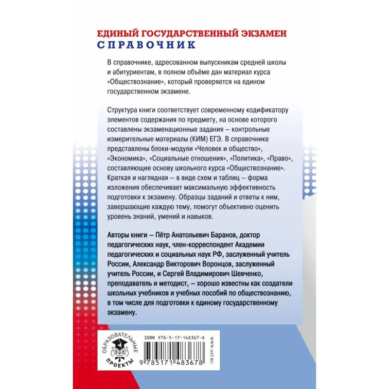 Справочник включает все основные сведения школьного курса "Обществознание" для 1 - 11 классов. Представлены материалы по философии, экономике, социалогии, социальной психологии, политологии, правоведению. Книга будет незаменимым помощником при изучении и закреплении нового материала и повторении пройденных тем, а также при подготовке к выпускному экзамену в школе, в том числе и в форме ЕГЭ, и вступительным экзаменам в любом вузе.