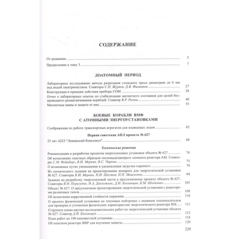 В томе публикуются в основном материалы, отражающие деятельность А. П. Александрова по созданию атомного флота страны. В первом разделе тома помещены его работы по военно-морской тематике, относящиеся к "доатомному" периоду его сотрудничества с флотом (электрический сетепрорезатель для подводных лодок, противоминная защита кораблей), выполненные в предвоенные годы и во время Великой Отечественной войны, когда он был сотрудником ЛФТИ. Основная часть тома содержит статьи, отчеты, технические решения, документальные материалы, имеющие отношение к разработке и строительству новейших видов морской техники, - атомных подводных лодок (АПЛ) и атомных ледоколов, в первую очередь таких объектов, как первая советская АПЛ "Ленинский Комсомол" (проект 627), усовершенствованная АПЛ с жидкометаллическим теплоносителем (проект 705) и первый в мире атомный ледокол "Ленин".Для физиков, инженеров, историков науки, военно-морского и гражданского флотов.