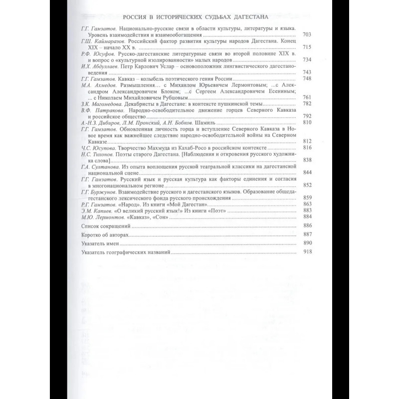 В коллективной монографии духовная культура народов Дагестана рассматривается в самых широких аспектах и многообразии смыслов - как художественное явление, как сложный гуманитарный, эстетический комплекс. Выявляются и осмысливаются важнейшие стороны исторического, социального и духовного развития Дагестана как одного из уникальных гео- и этнополитических регионов России в прошлом и настоящем. Выясняется место русско-европейских и русско-ближневосточных взаимосвязей в исторических судьбах народов Российской империи. Особое значение при этом придается исследованию важнейших аспектов взаимных интересов Дагестана со странами Европы (Германия, Франция, Англия) и Ближнего Востока (Арабский мир, Иран, Турция) в историко-культурной области. Дается характеристика роли российской цивилизации в становлении и формировании многонациональных историко-культурных сообществ в Дагестане и на Северном Кавказе. Труд представляет собой попытку дать образ Дагестана в историко-культурном прошлом и современно... Развернуть