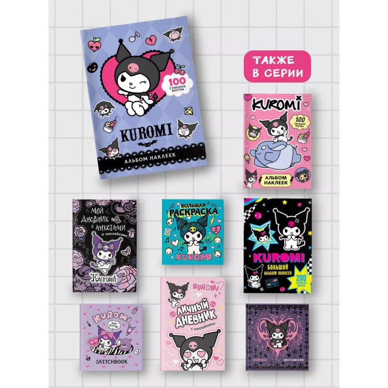 Дерзкая, но очаровательная Куроми и ее друзья любят весело проводить время вместе! В этом альбоме собраны 100 стикеров с любимыми героями! Присоединяйся к друзьям и украшай тетради, блокноты и дневники яркими стикерами!