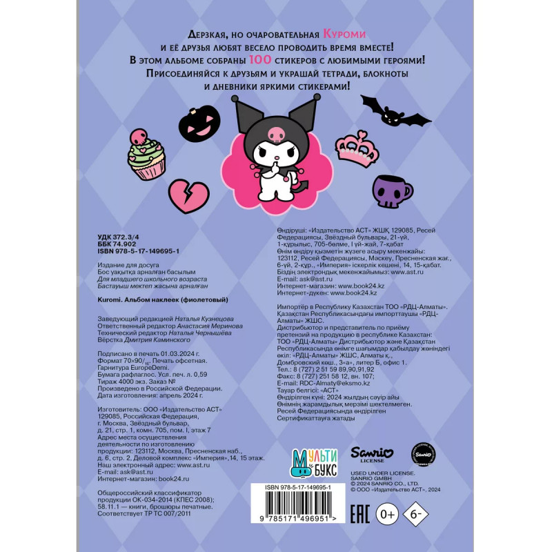 Характеристики Kuromi. Альбом наклеек (фиолетовый).
