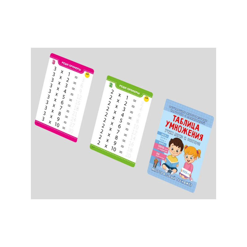 Многоразовые карточки пиши-стирай — отличный вариант для изучения таблицы умножения. Пособие содержит тренировочные упражнения, примеры, игры и головоломки по авторской методике известного педагога и психолога Ольги Звонцовой. Ламинированные карточки долговечны и могут использоваться многократно. Ребенок сможет легко стирать написанное, не будет бояться ошибок, почувствует себя увереннее. Игровой подход в сочетании с математическими упражнениями позволяет лучше запоминать материал, активизирует работу мозгу, улучшает внимание и память. Кругленые углы обеспечивают безопасность при работе с карточками. Набор удобно взять с собой в школу или в дорогу. Обучающие карточки подойдут для подарка школьнику. Учитесь с пользой и удовольствием!