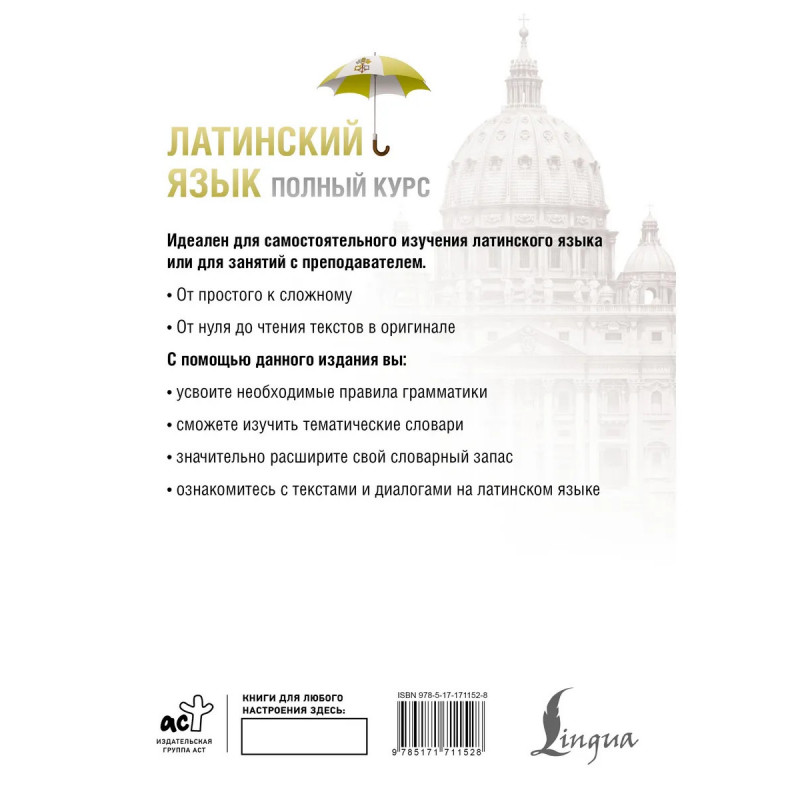 Латинский язык до сих пор встречается в медицинских названиях, юридических и научных терминах, а также остается ключевым элементом в изучении классической литературы и истории. Полный курс содержит 33 урока, постепенное изучение которых позволяет освоить правила чтения, изучить основы грамматики, познакомиться с богатым лексическим материалом. Теория представлена в простой и понятной форме, для закрепления материала в каждом уроке предложены упражнения, ключи к ним даны в конце книги. Для удобства читателей в пособии также помещены латинско-русский и русско-латинский словари. Издание подходит для всех, кто хочет выучить латынь с преподавателем или самостоятельно.
