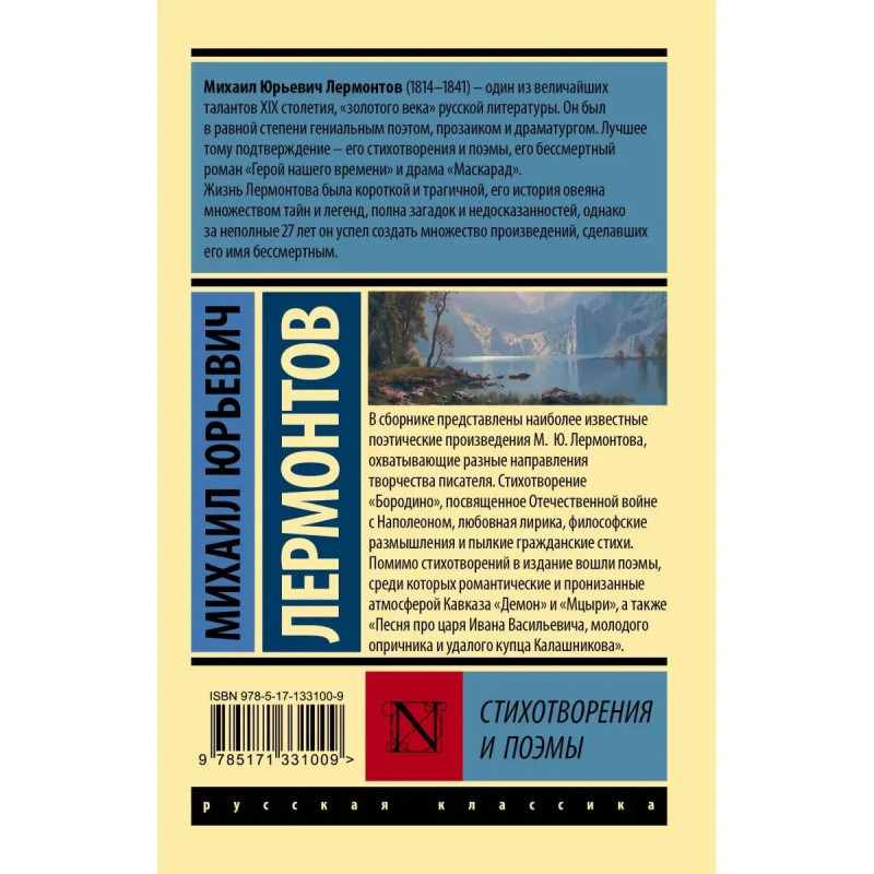 В сборнике представлены наиболее известные поэтические произведения М.Ю. Лермонтова, охватывающие разные направления творчества писателя. Стихотворение "Бородино", посвященное Отечественной войне с Наполеоном, любовная лирика, философские размышления и пылкие гражданские стихи. Помимо стихотворений в издание вошли поэмы, среди которых романтические и пронизанные атмосферой Кавказа "Демон" и "Мцыри", а также "Песня про царя Ивана Васильевича, молодого опричника и удалого купца Калашникова".