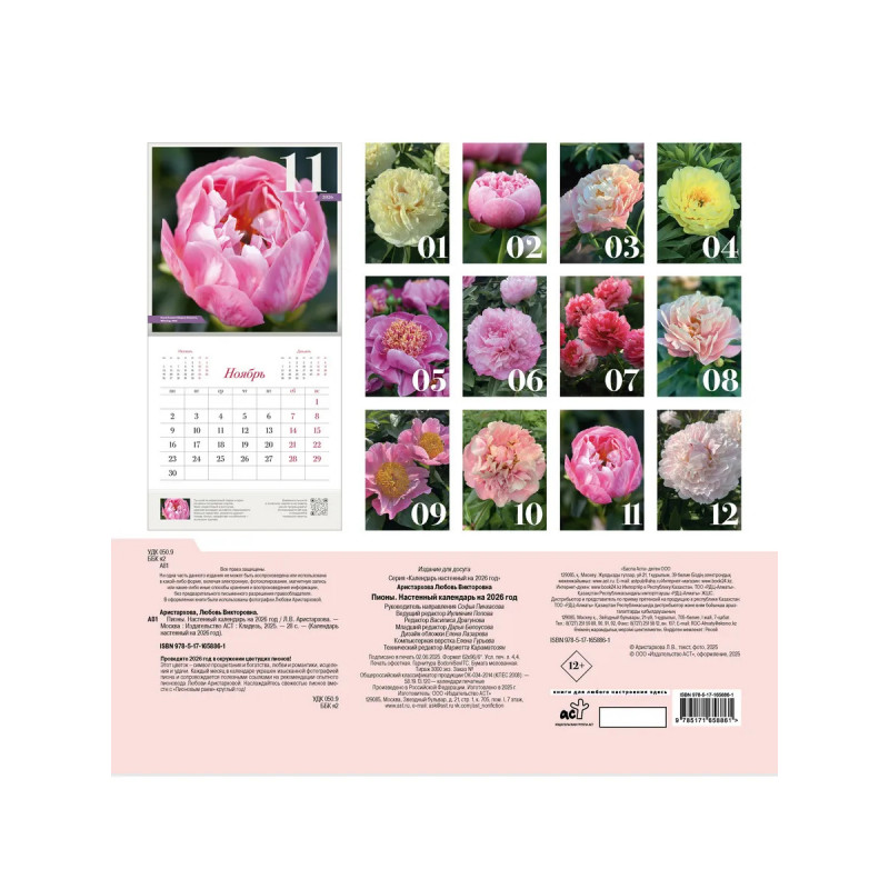 Характеристики Пионы. Настенный календарь на 2026 год.