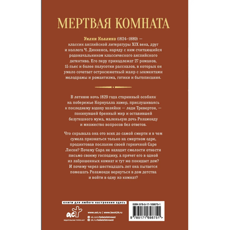 — Новинка в серии «Викторианский бестселлер». В серии публикуются лучшие произведения, написанные за время правления королевы Виктории — период наивысшего расцвета Британской империи. — Уилки Коллинз — автор романов «Лунный камень» и «Женщина в белом», один из самых видных представителей британской литературы второй половины XIX века.