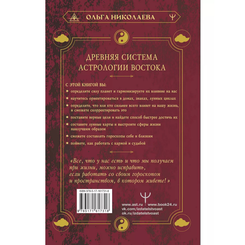 Небесная астрология Востока. Ведические законы судьбы. Эта книга поможет вам быстро освоить основы восточной астрологии, чтобы делать точные предсказания и менять судьбу. Автор Ольга Николаева, практикующий более 20 лет астролог, делится с читателем знаниями китайской метафизики и сакральными ведическими практиками. Максимум полезной информации, доступное изложение, простая структура помогут глубже проникнуть в тайны ведической астрологии и использовать ее для достижения желаемого. С помощью этой книги вы сможете быстро научиться составлять точнейшие гороскопы, начнете ориентироваться в домах, знаках, планетах, лунных циклах, определите их влияние на вашу жизнь, вычислите события прошлого, которые повлияли на вашу судьбу, проясните и скорректируете карму, чтобы избежать многих проблем в будущем. Книга выходила ранее под названиями "Индийская астрология Джйотиш. Узнайте свою судьбу", "Ведическая астрология. Тайны судьбы и предназначения. Понятный самоучитель" и "Современная ведическая астрология. Тайны судьбы, кармы, предназначения. 3-е издание".