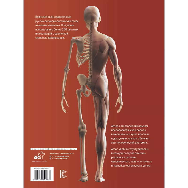 Атлас анатомии человека. Русско-латинско-английское издание. Единственный современный русско-латинско-английский атлас анатомии человека. В издании использовано более 200 цветных иллюстраций с различной степенью детализации. Автор с многолетним опытом преподавательской работы в медицинских вузах простым и доступным языком объяснит азы человеческой анатомии. Атлас удобно структурирован, в каждом разделе описаны различные системы человеческого тела - от клеток и тканей до организма в целом.
