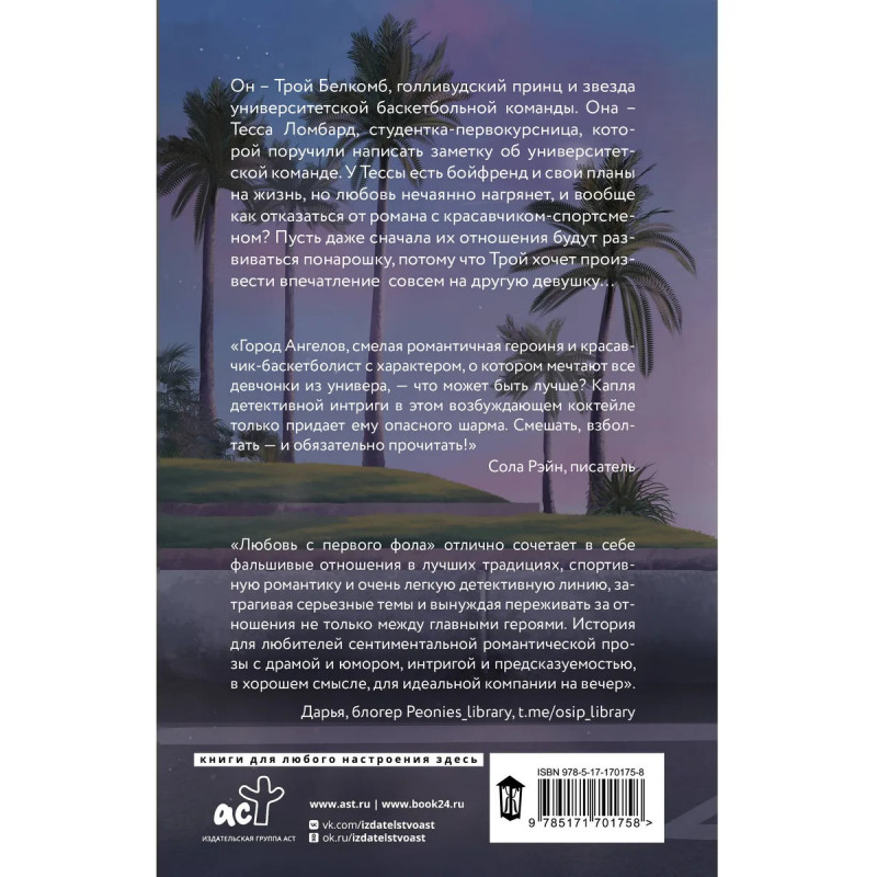 - Яркая новинка для поклонников спортивной романтики. - Интригующая любовная история с тропом «фальшивые отношения» и детективным элементом. - Трой — звезда баскетбольной команды и сын известного продюсера Голливуда. Тесса — студентка университета, дочь автора детективов, причем в ее жизни есть своя детективная загадка — исчезновение матери. Однажды Трой и Тесса встречаются, чтобы распутать еще одну странную историю. - Романтическая линия, спортивный сеттинг и детективные элементы не дают читателю заскучать до финала. Буря эмоций накроет читателя с головой. - Серия спортивной романтики «Растопи меня нежно».