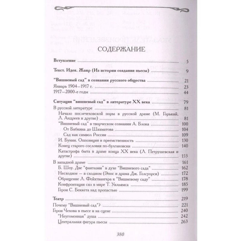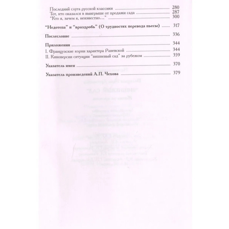 Последняя пьеса Чехова оказалась пророческой — как предвестие драматических событий XX в. и начало пути "новой драмы" к иным формам. Отсюда растущий интерес к ней в современном мире. Гибель одного дворянского имения прочитана в книге как ситуация "вишневый сад" в любую эпоху. Интерпретации пьесы рассматриваются с момента ее появления до недавних исследований и постановок. По-новому освещены творческие отклики на пьесу (от Горького до Беккета и др.). Впервые идет речь о ее ключевых словах в связи с переводами. Делено внимание роли театра для понимания пьесы и ее героев, киноверсиям по ее мотивам. В книге отражены и трагические предчувствия Чехова, и вера, что цветение сада на Земле вечно...Для специалистов и широкого круга читателей — к 100-летию "Вишневого сада".