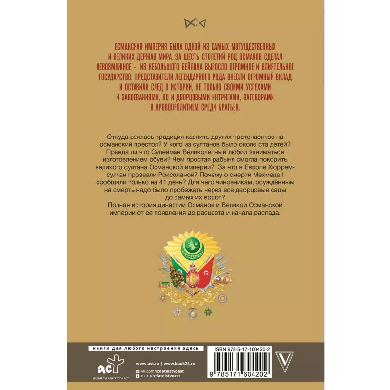 Османы. История великой империи. Османская империя одна из самых могущественных и великих держав. За шесть столетий род Осман сделал невозможное, и из небольшого бейлика выросло огромное и влиятельное государство. Представители рода Осман внесли огромный вклад и оставили след в истории, не только своими успехами и завоеваниями, но и дворцовыми интригами, заговорами и кровопролитием среди братьев. Откуда взялась традиция казнить других претендентов на османский престол? У кого из султанов было около ста детей? Правда ли что Сулейман Великолепный любил заниматься изготовлением обуви? Чем простая рабыня смогла покорить великого султана Османской империи? За что в Европе Хюррем-султан прозвали Роксоланой? Почему о смерти Мехмеда I сообщили только на 41 день? Почему должность великого визиря была крайне нежелательной во время правления Селима Грозного? Для чего чиновникам, осуждённым на смерть надо было пробежать через все дворцовые сады до самых их ворот? Вся история династии Осман и Великой Османской империи от ее появления до апогея и начала р