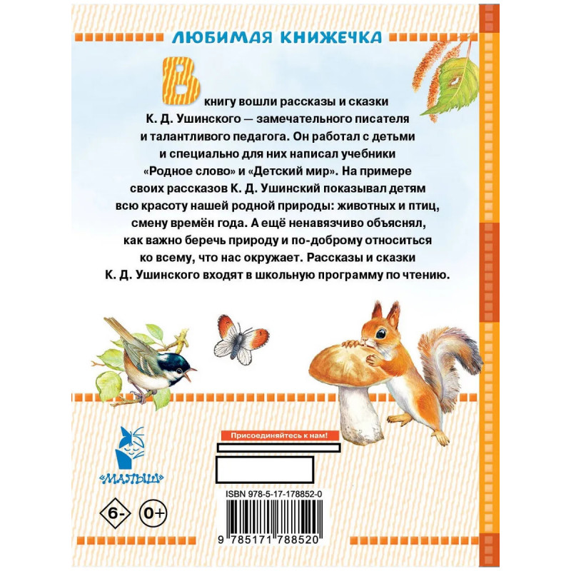 В книгу вошли рассказы и сказки К. Д. Ушинского — замечательного писателя и талантливого педагога. Он работал с детьми и специально для них написал учебники «Родное слово» и «Детский мир». На примере своих рассказов К. Д. Ушинский показывал детям всю красоту нашей родной природы: животных и птиц, смену времён года. А ещё ненавязчиво объяснял, как важно беречь природу и по-доброму относиться ко всему, что нас окружает. Рассказы и сказки К. Д. Ушинского входят в школьную программу по чтению.