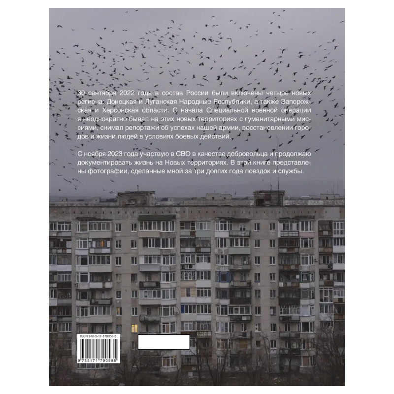 30 сентября 2022 года в состав России были включены четыре новых региона: Донецкая и Луганская Народные Республики, а также Запорожская и Херсонская области. С начала Специальной военной операции я неоднократно бывал на этих новых территориях с гуманитарными миссиями, снимал репортажи об успехах нашей армии, восстановлении городов и жизни людей в условиях боевых действий. С ноября 2023 года участвую в СВО в качестве добровольца и продолжаю документировать жизнь на Новых территориях. В этой книге представлены фотографии, сделанные мной за три долгих года поездок и службы.
