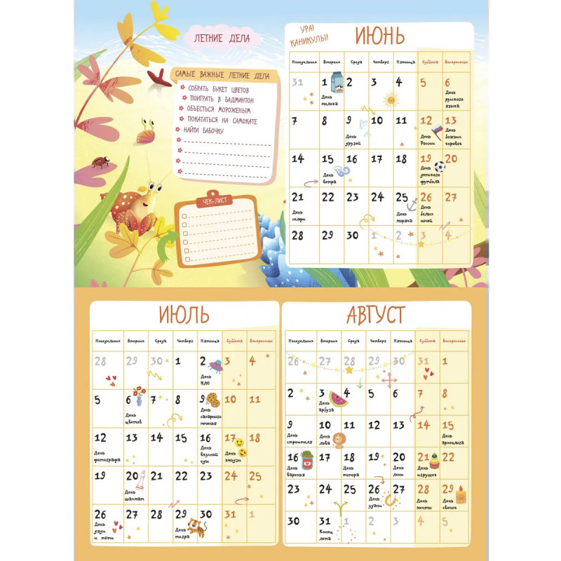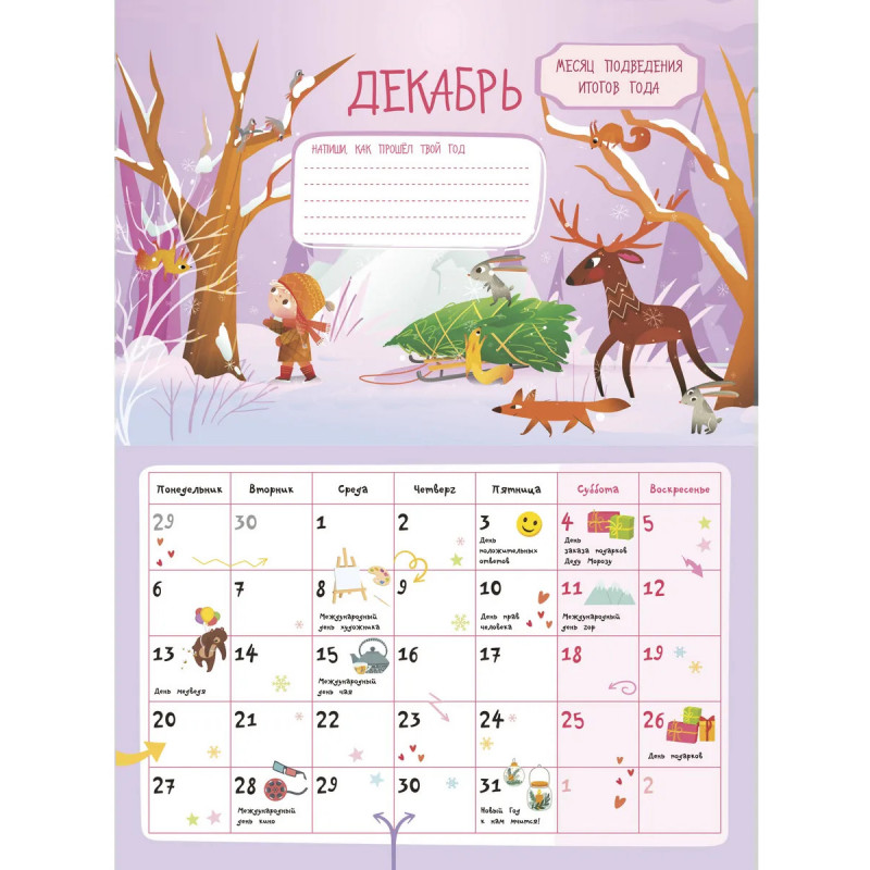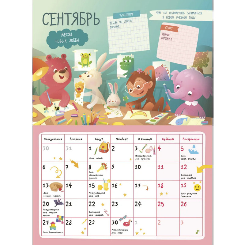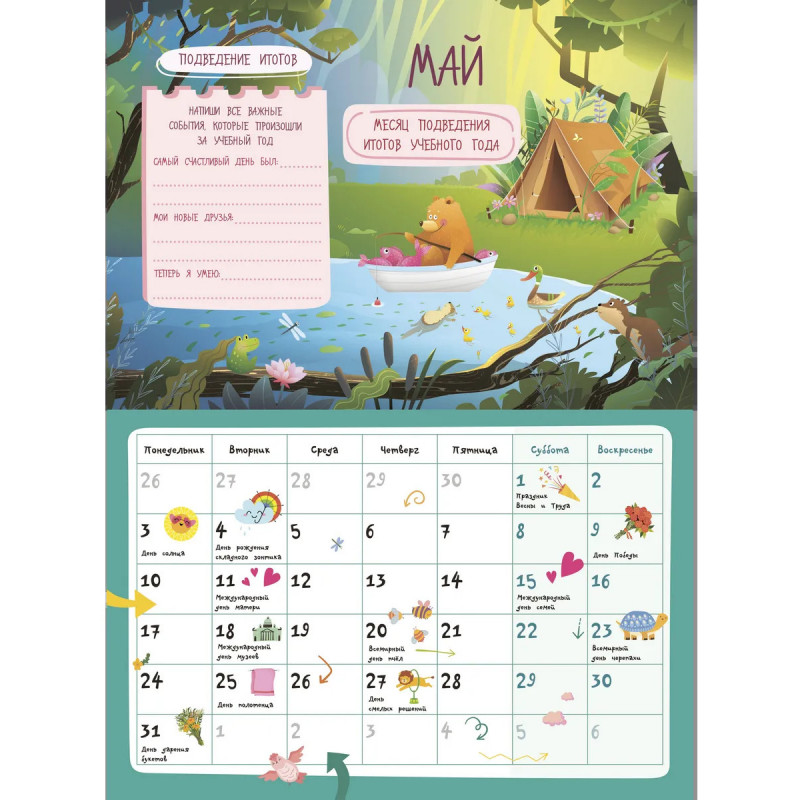 Умный настенный планер и одновременно календарь для младших школьников на целый учебный 2026-2027 год — яркий и необычный подарок на Новый год ребёнку, другу, подруге, брату, сестре. А также хорошая идея для родительского комитета при выборе полезных новогодних подарков для целого класса! В комплекте 101 стикер — отлично помогает в планировании и служит классным мотиватором: каждый выполненный пункт можно отмечать наклейками, и это стимулирует к достижению целей. Календарь с наклейками поможет юным школьникам организовать свой учебный год — не только своевременно напомнит о контрольных работах и классных мероприятиях, но и расскажет об интересных праздниках, подарит много креативных идей, сохранит важные воспоминания о лучших друзьях, любимых учителях и планах на будущее. Выберите наш планер для детской комнаты и ребёнок сможет: Визуально запомнить цикличность времен года, месяцев, дней недели. Ориентироваться в количестве дней в месяце. Ставить цели — достигать их, и чувствовать себя уверенно.