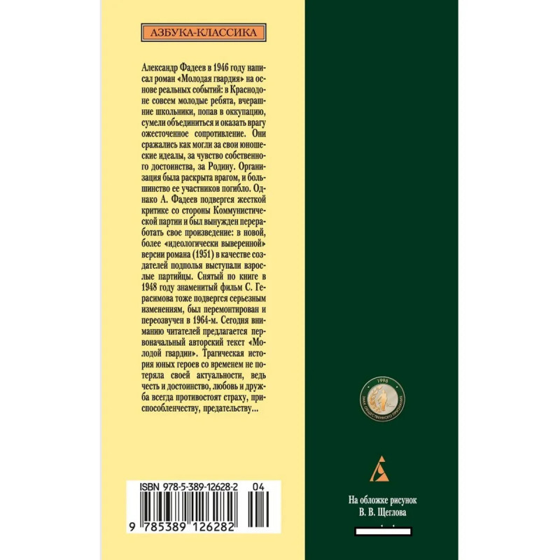 Александр Фадеев в 1946 году написал роман Молодая гвардия на основе реальных событий: в Краснодоне совсем молодые ребята, вчерашние школьники, оказавшись в оккупации, сумели объединиться и оказать врагу ожесточенное сопротивление. Они сражались, как могли, за свои юношеские идеалы, за чувство собственного достоинства, за Родину. Организация была раскрыта врагом, и большинство ее участников погибло. Однако А. Фадеев подвергся жесткой критике со стороны Коммунистической партии и был вынужден переработать свое произведение: в новой, более идеологически выверенной версии романа (1951) в качестве создателей подполья выступали взрослые партийцы. Снятый по книге знаменитый фильм С. Герасимова 1948 года тоже подвергся серьезным изменениям, был перемонтирован и переозвучен в 1964-м. Сегодня вниманию читателей предлагается первоначальный авторский текст Молодой гвардии.