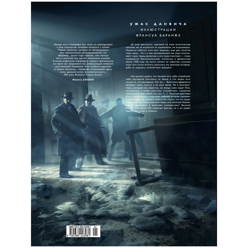 Говард Филлипс Лавкрафт, не опубликовавший при жизни ни одной книги, стал маяком и ориентиром жанра литературы ужасов, кумиром как широких читательских масс, так и рафинированных интеллектуалов. Влияние его признавали такие мастера, как Борхес, и такие кумиры миллионов, как Стивен Кинг, его рассказы неоднократно экранизировались, а само имя писателя стало нарицательным. Франсуа Баранже французский художник, дизайнер компьютерных игр, концептуалист и футурист. Мечту оформить Лавкрафта он вынашивал много лет и вот наконец мечта сбылась: вашему вниманию предлагается уже четвертая часть проекта с иллюстрациями французского мастера, после Зова Ктулху и Хребтов Безумия (в двух томах), повесть Ужас Данвича о чудовищных злодействах, загадочных смертях, кровосмешениях и иных деяниях, не менее извращенных и богомерзких, что происходили в этом уголке северного Массачусетса в 1928 году...