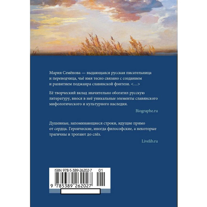 Мария Васильевна Семёнова (р. 1958) русский писатель, большой мастер, мифотворец, который создаёт свои миры и описывает их с точностью этнографа и занимательностью иллюзиониста. Она удостоена премий Лучшая детская книга года, Аэлита, журнала Мир фантастики, РосКон и Беляевской премии. Цикл романов оВолкодаве сегодня считается классикой современной российской фэнтези поджанра, обязанного своим рождением именно Марии Семёновой; также во вселенной Волкодава разворачивается история героев из более позднего цикла Братья. Эти и другие книги невозможно представить без прекрасных стихов напевных, запоминающихся, глубоких, и трогательных, и философских. Внастоящем сборнике, помимо стихотворений, уже полюбившихся читателям, в разделе Я гусли у дороги подобрал... публикуются новые стихи Марии Семёновой.