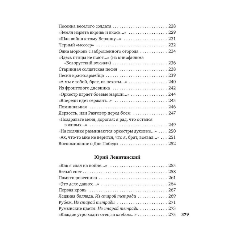 В сборник вошли произведения поэтов-фронтовиков, творческий и жизненный путь которых во многом определила Великая Отечественная война. Среди них Александр Твардовский, Константин Симонов, Арсений Тарковский, Булат Окуджава, Давид Самойлов, Юрий Левитанский, Борис Слуцкий, Семен Гудзенко... Часть включенных в издание стихотворений была написана во время войны голос Музы продолжал звучать вместе с грохотом пушек. Другая часть была создана спустя годы после ее окончания. Оглядываясь назад, в прошлое, прислушиваясь к себе, обращаясь к глубинам памяти, поколение вчерашних солдат воссоздавало, строчка за строчкой, одну из самых великих итрагических страниц российской истории.