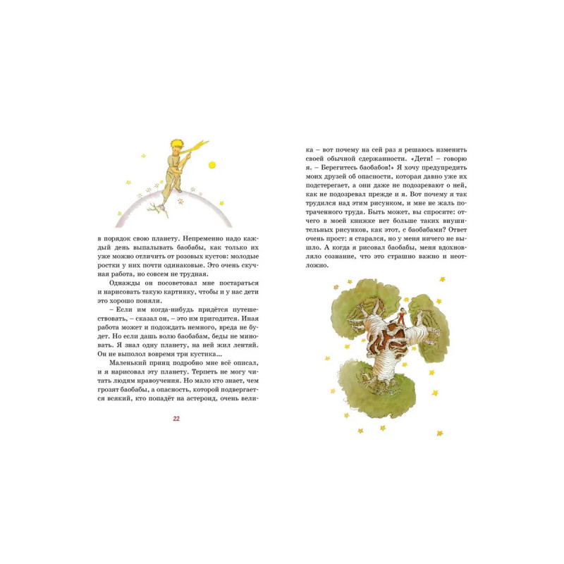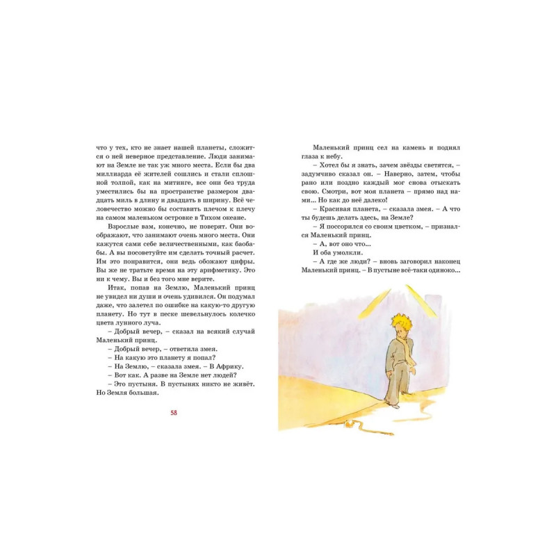 «Маленький принц» – самое известное произведение французского писателя Антуана де Сент-Экзюпери. Эта волшебная, проникновенная история путешествий Маленького принца к далёким планетам до сих пор трогает сердца и детей и взрослых, потому что она о самом важном в жизни – о долге и верности, о доброте и мудрости, о красоте и дружбе. Книга, впервые опубликованная в 1943 году, была переведена более чем на 300 языков.