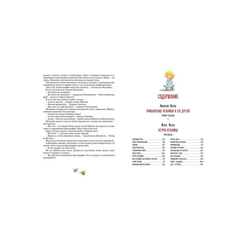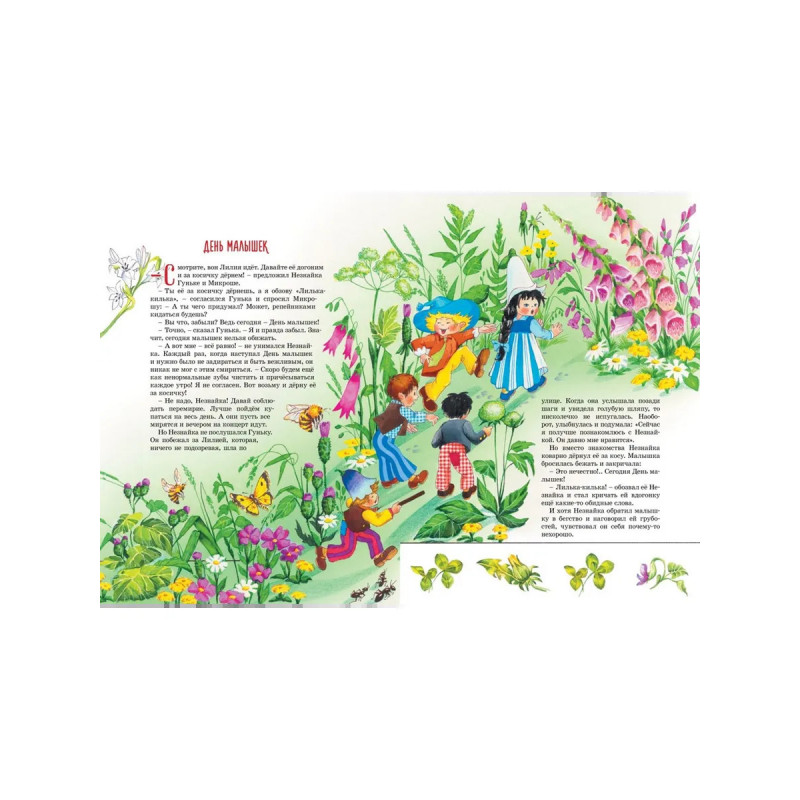 В книгу вошли «Приключения Незнайки и его друзей» – любимая многими поколениями история о малышах из Цветочного города, которые сооружают воздушный шар и попадают в Зелёный город, а также весёлые рассказы о Незнайке, его друге Гуньке, учёном Знайке, художнике Тюбике, докторе Пилюлькине и других обитателях Страны коротышек.