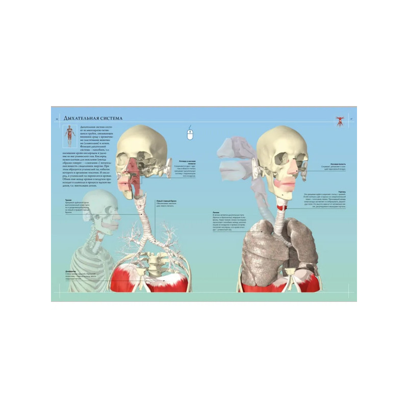 На страницах этого большого справочника по анатомии представлены 3D-модели и описания каждой системы организма человека. Невероятно подробные объемные иллюстрации позволят во всех деталях рассмотреть внутренние органы и части организма, даже те, что ранее были труднодоступными для исследования. Вы сможете увидеть, как устроены клетки, из каких тканей состоят органы, а также узнаете, как работает главный орган человеческого тела – головной мозг.