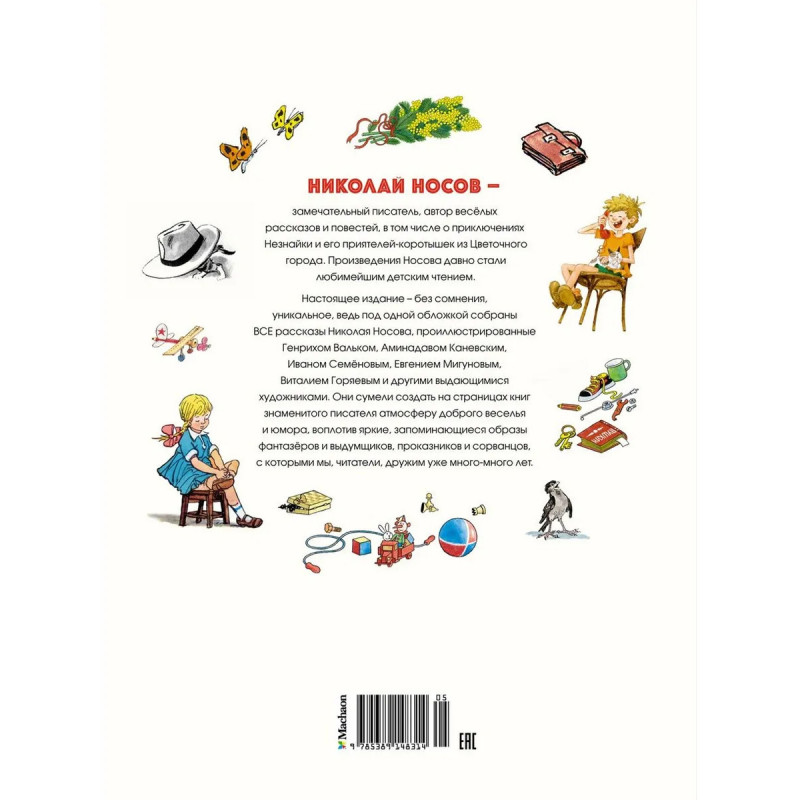 Настоящее издание – без сомнения, уникальное, ведь под одной обложкой собраны ВСЕ рассказы Николая Носова, проиллюстрированные Генрихом Вальком, Аминадавом Каневским, Иваном Семёновым, Евгением Мигуновым, Виталием Горяевым и другими выдающимися художниками. Они сумели создать на страницах книг знаменитого писателя атмосферу доброго веселья и юмора, воплотив яркие, запоминающиеся образы фантазёров и выдумщиков, проказников и сорванцов, с которыми мы, читатели, дружим уже много-много лет.
