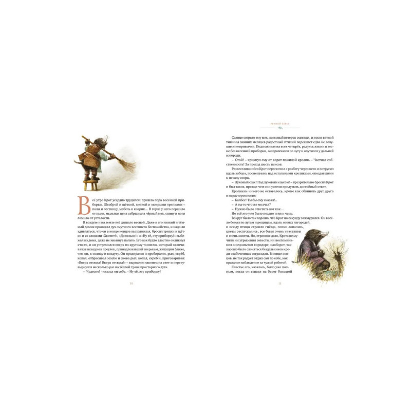 «Ветер в ивах» – детская повесть, которую с равным удовольствием читают дети и взрослые. Написанная и изданная в начале прошлого века в Англии, она разошлась по всему миру, переведена на множество языков. Читателям полюбились её герои — разумный и добрый Крот, гостеприимный, рассудительный Водяной Крыс, тщеславный Жаб, суровый, надёжный в дружбе Барсук и другие обитатели Речного Берега и неприветливой Дикой Чащи. Их приключения, забавные, а порою опасные, кончаются хорошо лишь потому, что все они готовы прийти друг другу на выручку.