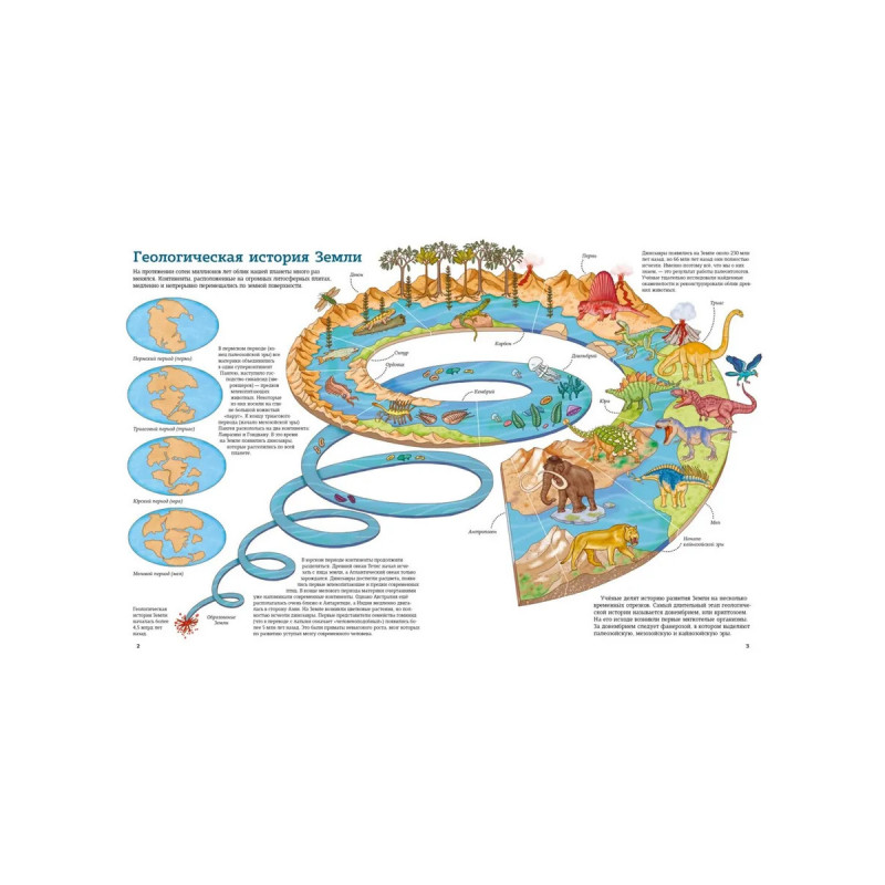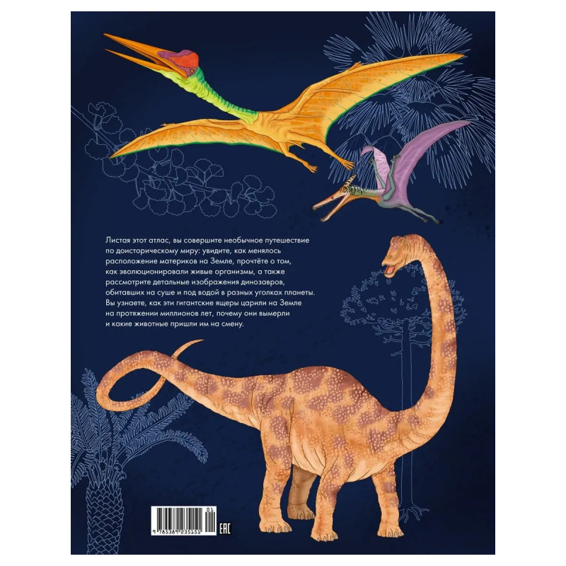 Листая этот атлас, вы совершите необычное путешествие по доисторическому миру: увидите, как менялось расположение материков на Земле, прочтёте о том, как эволюционировали живые организмы, а также рассмотрите детальные изображения динозавров, обитавших на суше и под водой в разных уголках планеты. Вы узнаете, как эти гигантские ящеры царили на Земле на протяжении миллионов лет, почему они вымерли и какие животные пришли им на смену.
