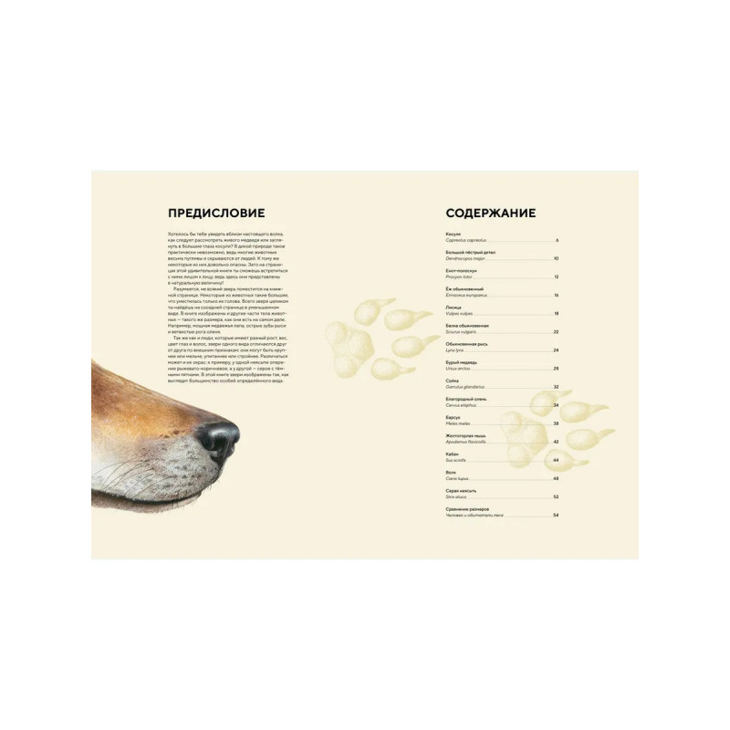 Большинство рисунков выполнено в натуральную величину. Ты узнаешь, какого размера на самом деле хвост лисы, рога оленя, копыта косули, голова волка, лапа барсука.