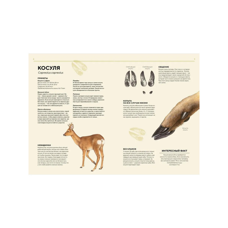 Также книга содержит много интересной информации о животных — от их повадок до особенностей питания. Рассмотри лесных обитателей в деталях и стань настоящим знатоком дикой природы!