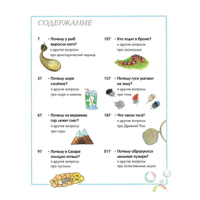 Что такое эволюция? Почему у гор острые вершины? Чем отличаются моря от океанов? Что такое "черные курильщики"? Какая рыба больше всех? Кто такая Люси? Почему кактусы колючие? Почему пищат комары? Что такое сноуборд?