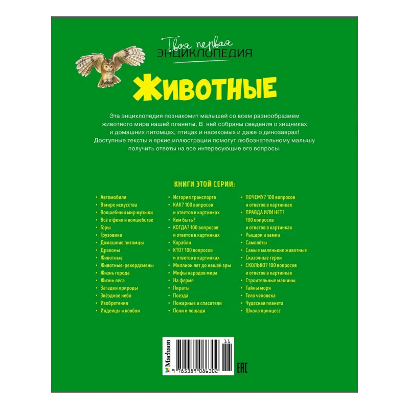 Эта энциклопедия познакомит малышей со всем разнообразием животного мира нашей планеты. В ней собраны сведения о разных видах животных: млекопитающих и хищниках, домашних питомцах и обитателях далеких джунглей, птицах, насекомых и даже о динозаврах! Доступные тексты и яркие иллюстрации помогут любознательному малышу получить ответы на все интересующие его вопросы.