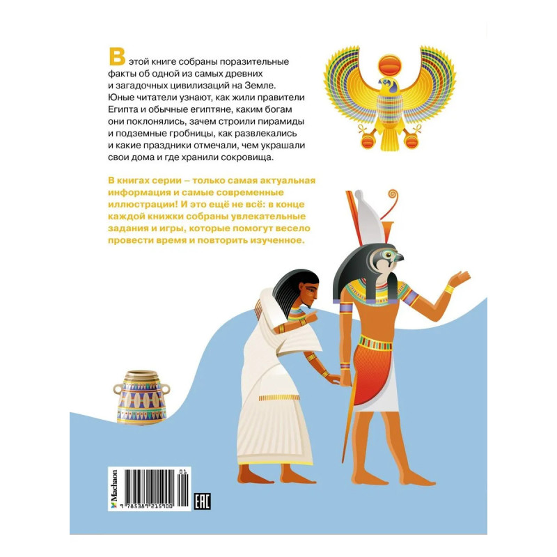 В этой книге собраны поразительные факты об одной из самых древних и загадочных цивилизаций на Земле. Юные читатели узнают, как жили правители Египта и обычные египтяне, каким богам они поклонялись, зачем строили пирамиды и подземные гробницы, как развлекались и какие праздники отмечали, чем украшали свои дома и где хранили сокровища. В книгах серии – только самая актуальная информация и самые современные иллюстрации! И это ещё не всё: в конце каждой книжки собраны увлекательные задания и игры, которые помогут весело провести время и повторить изученное.