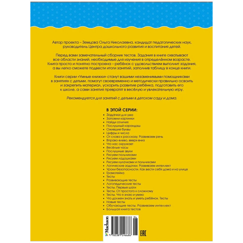 В книгах из серии «Умные книжки» есть всё, что необходимо знать вашему ребёнку. Они станут вашими незаменимыми помощниками в занятиях с детьми, помогут своевременно и методически правильно освоить и закрепить материал, ускорить развитие ребёнка, подготовить его к школе, а сами занятия превратят в весёлую и увлекательную игру.