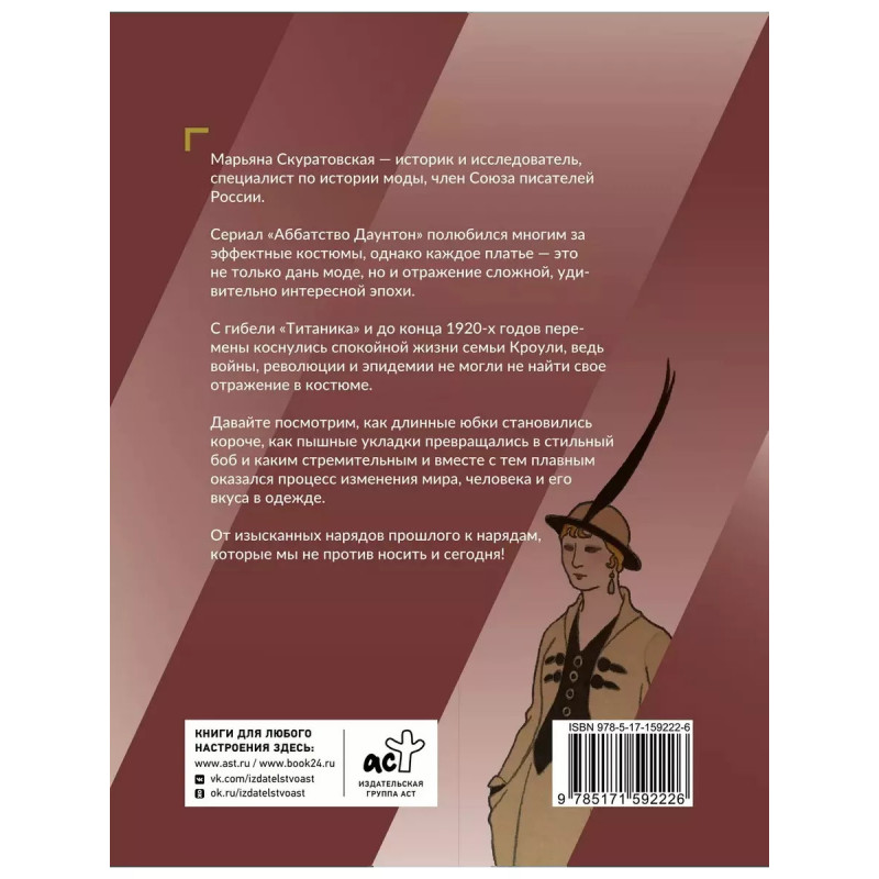 Марьяна Скуратовская историк и исследователь, специалист по истории моды, член Союза писателей России. Сериал "Аббатство Даунтон" полюбился многим за эффектные костюмы, однако каждое платье это не только дань моде, но и отражение сложной, удивительно интересной эпохи. Действие начинается гибелью "Титаника", и заканчивается в конце 1920-х годов. Давайте посмотрим, как длинные юбки становились короче, как пышные укладки превращались в стильный боб, и каким стремительным и вместе с тем плавным оказался процесс изменения мира, человека и его вкуса в одежде. От изысканных нарядов прошлого к тем, которые мы сегодня и сами были бы не прочь носить!