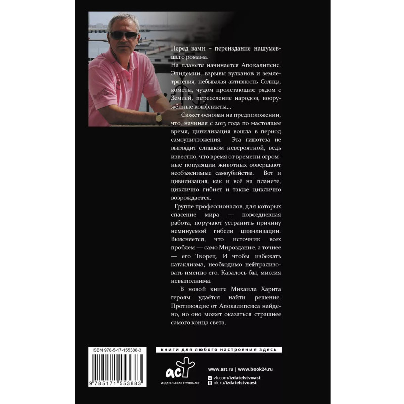 Рыбари и виноградари. В начале перемен. Перед вами - переиздание нашумевшего романа. На планете начинается апокалипсис. Эпидемии, взрывы вулканов и землетрясения, небывалая активность Солнца, кометы, чудом пролетающие рядом с Землёй, переселение народов, вооружённые конфликты Сюжет основан на предположении, что, начиная с 2013 года по настоящее время, цивилизация вошла в период самоуничтожения. Эта гипотеза не выглядит слишком невероятной, ведь известно, что время от времени огромные популяции животных совершают необъяснимые самоубийства. Вот и цивилизация, как и всё на планете, циклично гибнет и так же циклично возрождается. Группе профессионалов, для которых спасение мира - повседневная работа, поручают устранить причину неминуемой гибели цивилизации. Выясняется, что источник всех проблем - само Мироздание, а точнее его - Творец. И чтобы избежать катаклизма, необходимо нейтрализовать именно его. Казалось бы, миссия невыполнима. В новой книге Михаила Харита героям удаётся найти решение. Противоядие от апокалипсиса найдено, но оно может оказаться